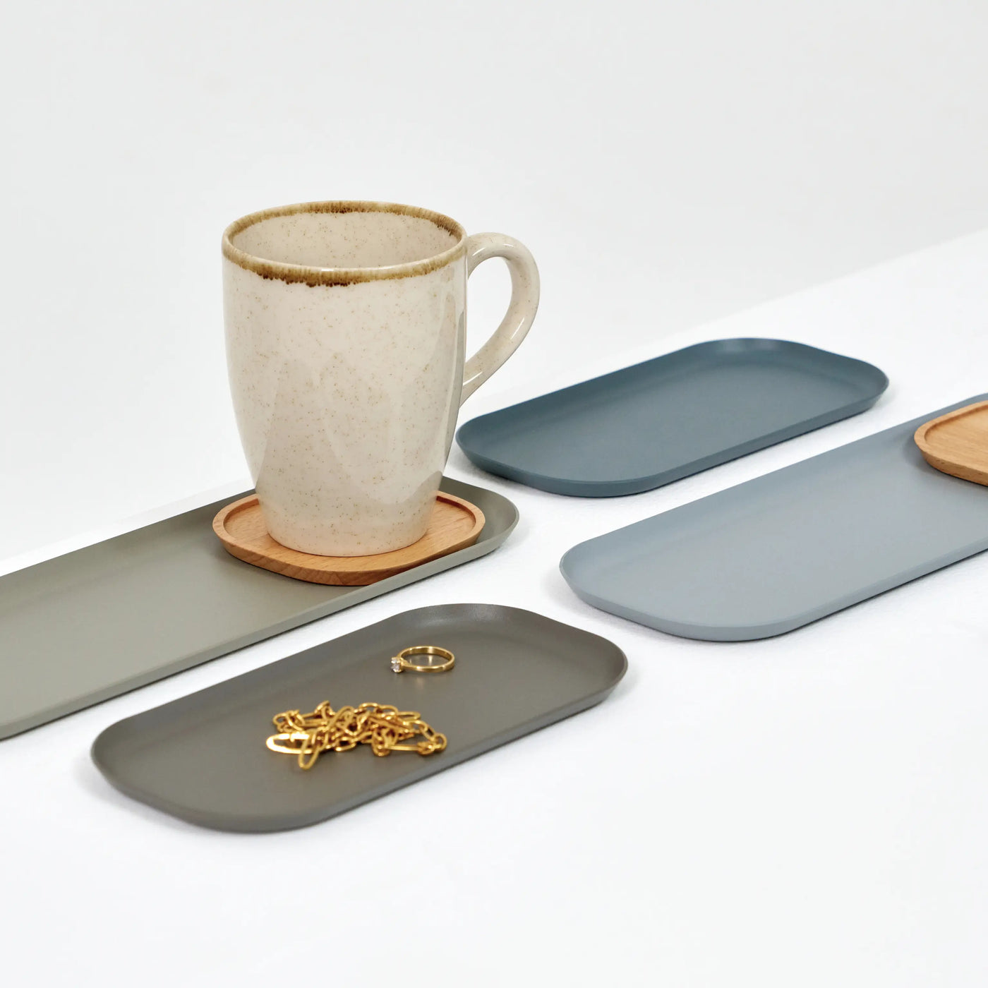A set of 3 nesting trays for your little things. Made from solid wood and powder-coated steel.